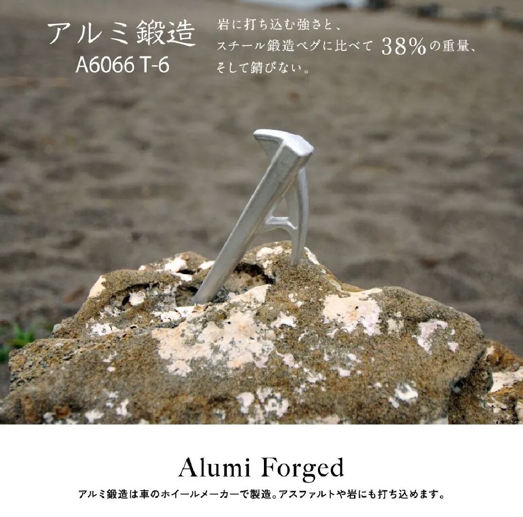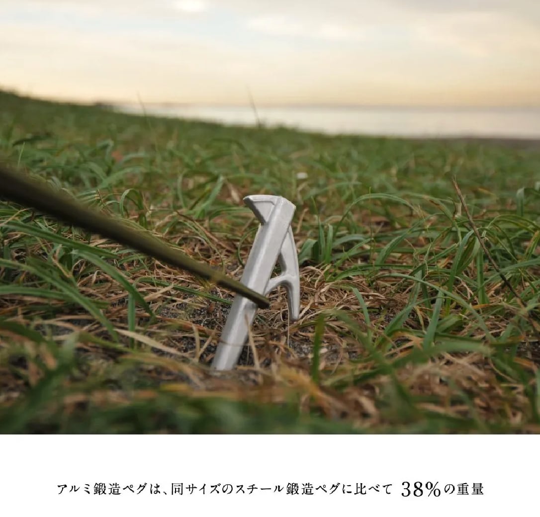 岩に打ち込む強さと、スチール鍛造ペグに比べて38%の重量。そして錆びない。