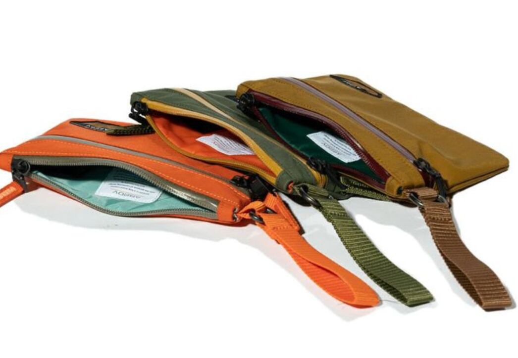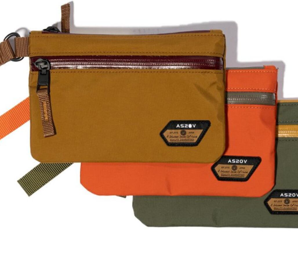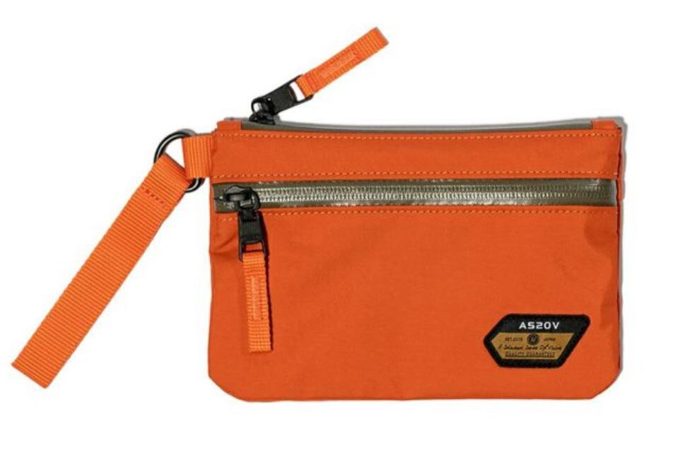 止水ファスナーとの組み合わせが AS2OV らしい特徴的なカラーリング、キャンプ ギアや日用品を入れるのに最適です。