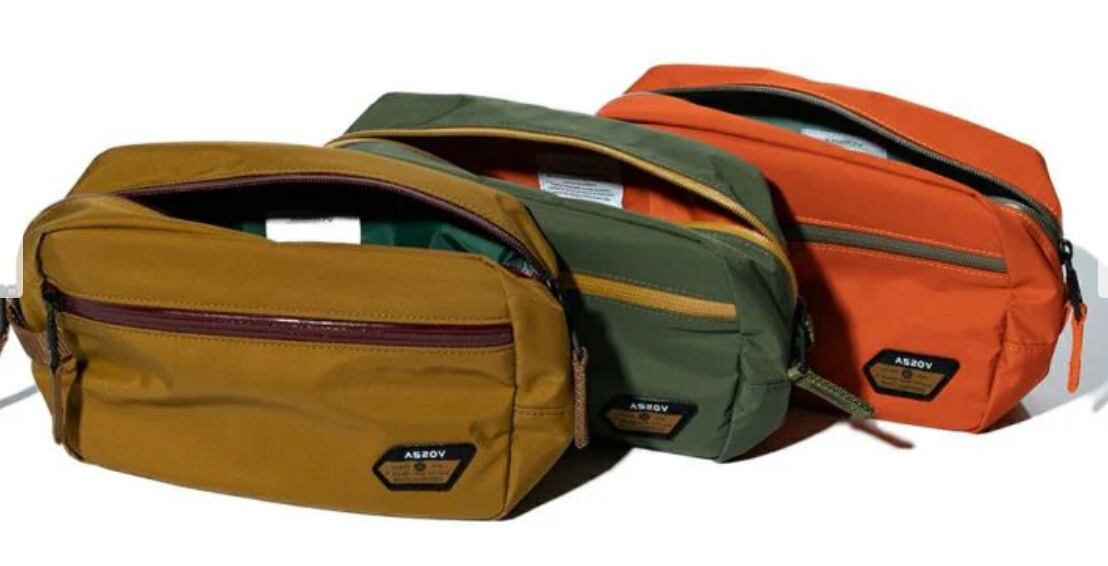 止水ファスナーとの組み合わせが AS2OV らしい特徴的なカラーリング、キャンプ ギアや日用品を入れるのに最適です。