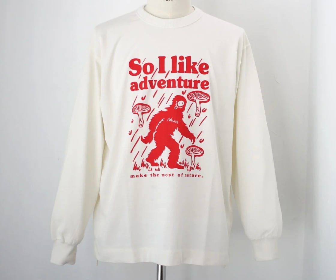 自然への好奇心と冒険心をテーマに、遊び心あふれるグラフィックをフロントにあしらったロングスリーブTシャツ。