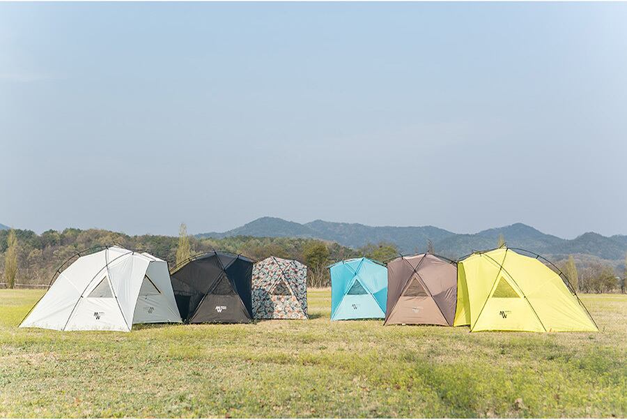 自立型シェルターなので、風の弱いところではぺぐダウンがいらなく、周りの状況によって柔軟に対応できます。