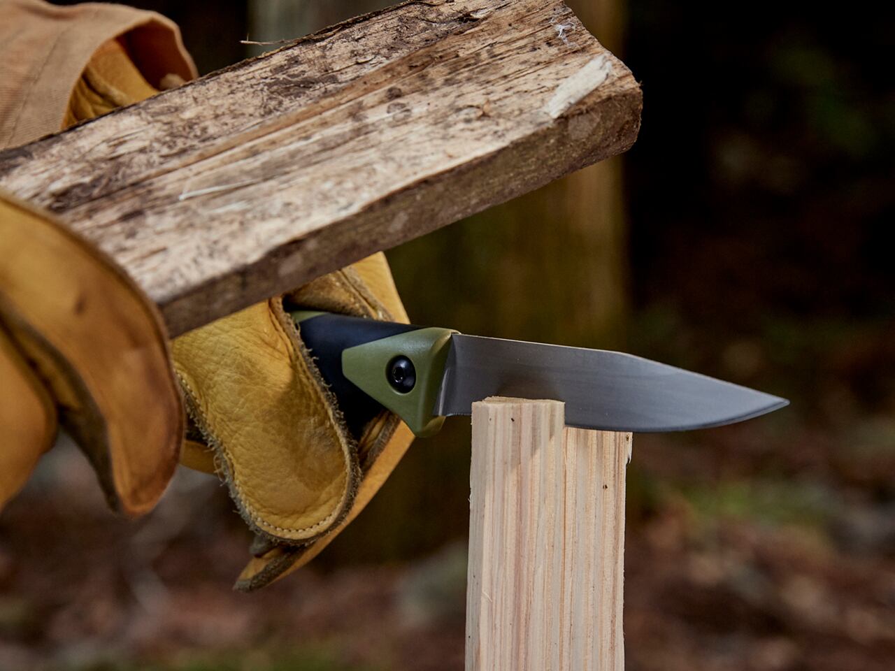 3.2mm厚のステンレス刃を装着したフルタングナイフ。切る・削るはもちろん、バトニングも可能。職人が1本1本丁寧に研ぎあげた刃とオルファの知識・経験をいかした設計は、切れ味・耐久性・使いやすさに優れています。シース付き。