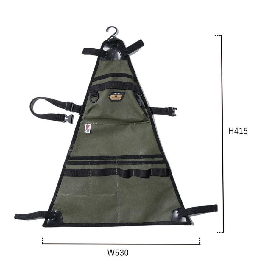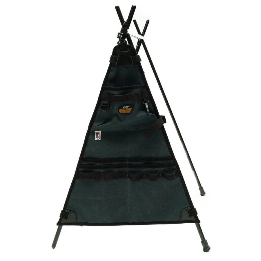 焚き火の火の粉などが当たっても燃え広がりにくく、インディアンハンガーのサイドポケットとして、キッチン周りの用具やガストーチ、手袋などを収納出来ます。