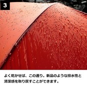 ※ウォッシュは1ボトルで2-3人用テントを2-3回分洗浄できます。プルーファーは1本で最大7?の面積に塗布が可能。