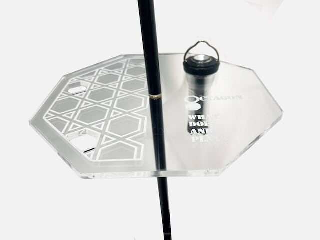 アクリルならではの光の屈折により光が広がります(ただしブラックは光を通さないため下に光を落とします)。また、5ミリアクリルを採用することにより上にはマグなどをのせることができます。